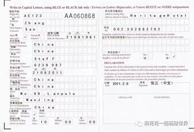 4、在飞往毛里求斯的飞机上需要填写入境卡和健康卡,入境时交给机场办理入境的人员。