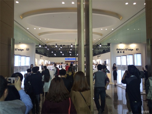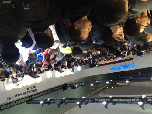 慢慢人越聚越多,我发现这次发布会可能和我想象的不太一样。果然,先是几位美女模特带着S7 edge和S7上台展示