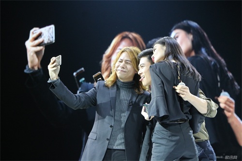 台上三位自拍留念