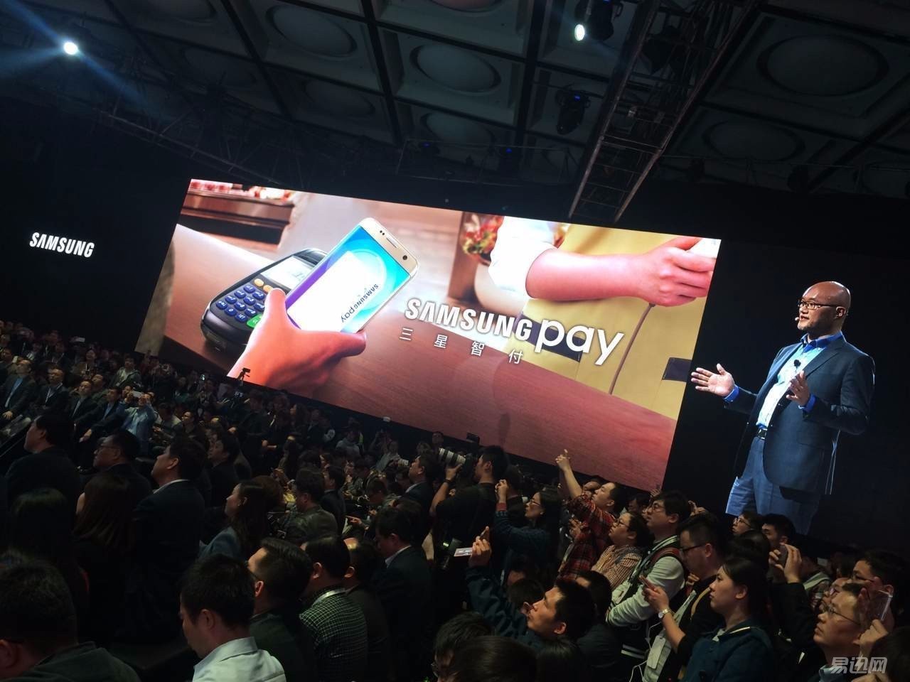 陈先生上台当然就是介绍本次发布会的重中之重--Samsung Pay(三星智付)