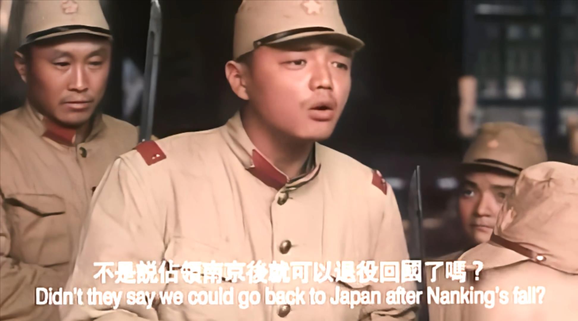 作为本片的线索人物,观众又通过老太太二儿子的视角目睹了日军在南京犯下的各种骇人罪行的现场。