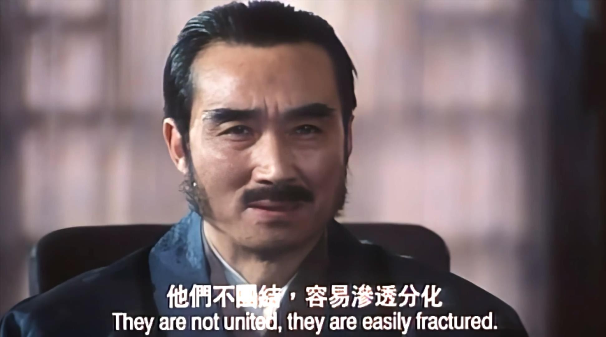和其他电影中涉及主战派和劝和派的淡出对立不同,这部影片还出现了表面追求和平,实则却想用文化、思想禁锢中国的第三类人,现在想想导演真是把人性看得深入骨髓。