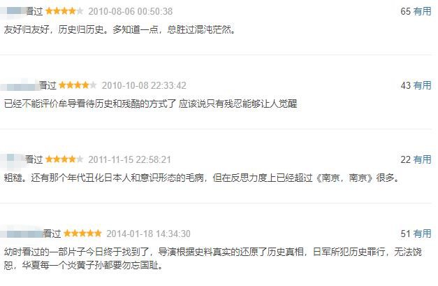 大段的真实纪录片回放让影片颇具说服力,也正是由于残忍的镜头才更激起了观众的愤怒情绪。很多观众更是把此片誉为远超《南京!南京!》《拉贝日记》《屠城血证》同类型电影。