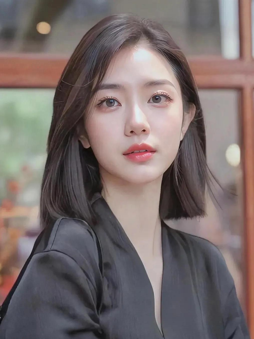第四款:外翻齐肩发!很多人不喜欢外翻,其实外翻的也很修饰脸型的,因为外翻的上弧线刚好是向内的,就贴合了脸颊!是比较大气的发型!