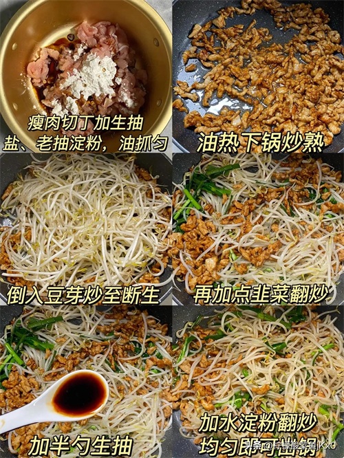 3️⃣豆芽炒肉片