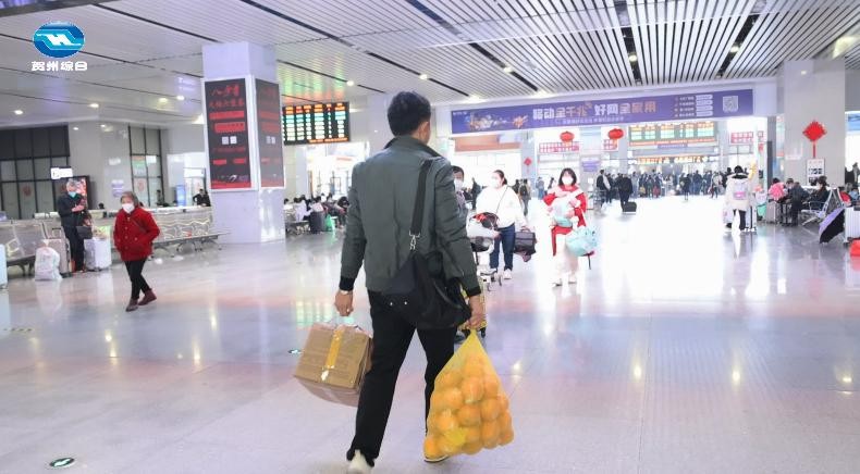 60多岁的张玉凤是福建人,随儿子、儿媳在贺州照顾孙子。春节临近,她也踏上了回家的旅途。“贺州有脐橙,脐橙还不错,挺甜的。我想回家过年了带一点给家人来尝一尝。”