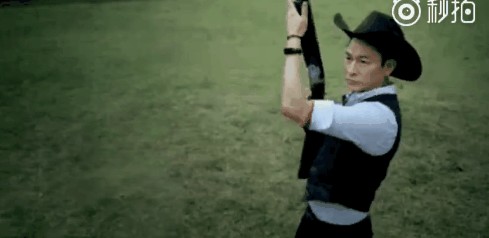 广告中刘德华走出马厩,在广阔草原上为长枪装上子弹,对准天空目标发射,模样相当神气。