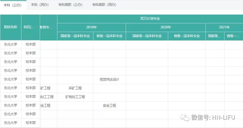 可查询到院校院系、专业设置,并可对应查询到该专业是不是国家级特色专业、是不是通过工程教育认证、是不是2019年,2020年国家级一流本科专业