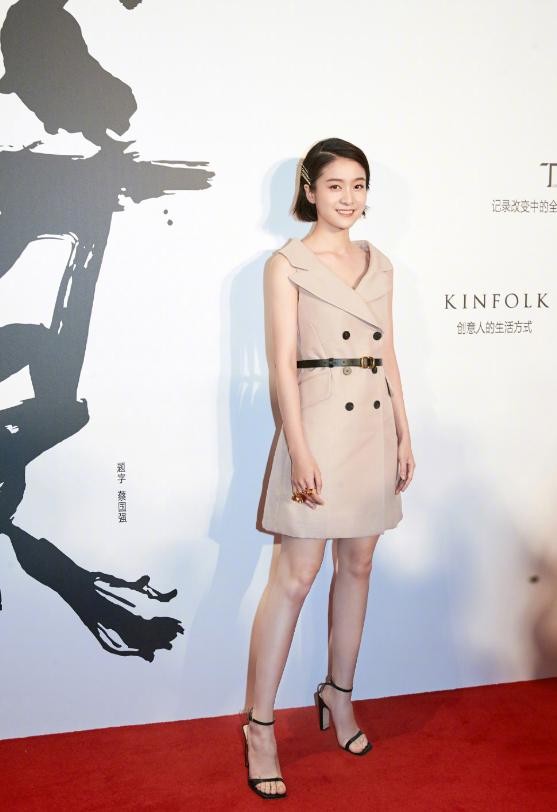 张雪迎笑起来还是很漂亮的,看着颇为温柔,身上穿着件风衣款无袖短裙,腰间用六颗纽扣装饰,中间则是一条黑色腰带,下方穿着黑色凉鞋,两条腿不算纤细,肤色也不是很白皙,但相对其它打了高光各种美颜的明星来说,却也更加真实,这身材还是很不错的。大家喜欢张雪迎吗?