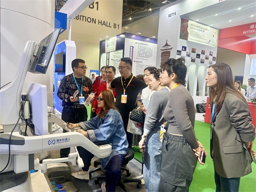 2025健博会期间,参观者可在武汉大学中南医院(光谷人民医院)展位现场体验智慧手术室模拟操作、远程机器人协作、电驱型腰部外骨骼机器人负重等场景,直观感受“未来医院”的科技魅力。