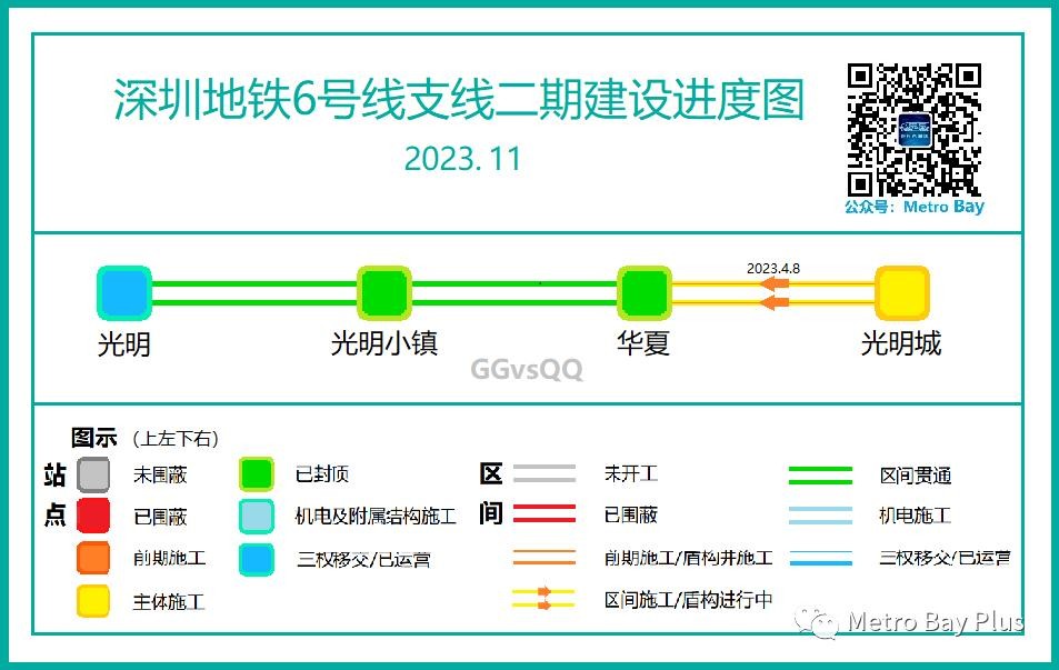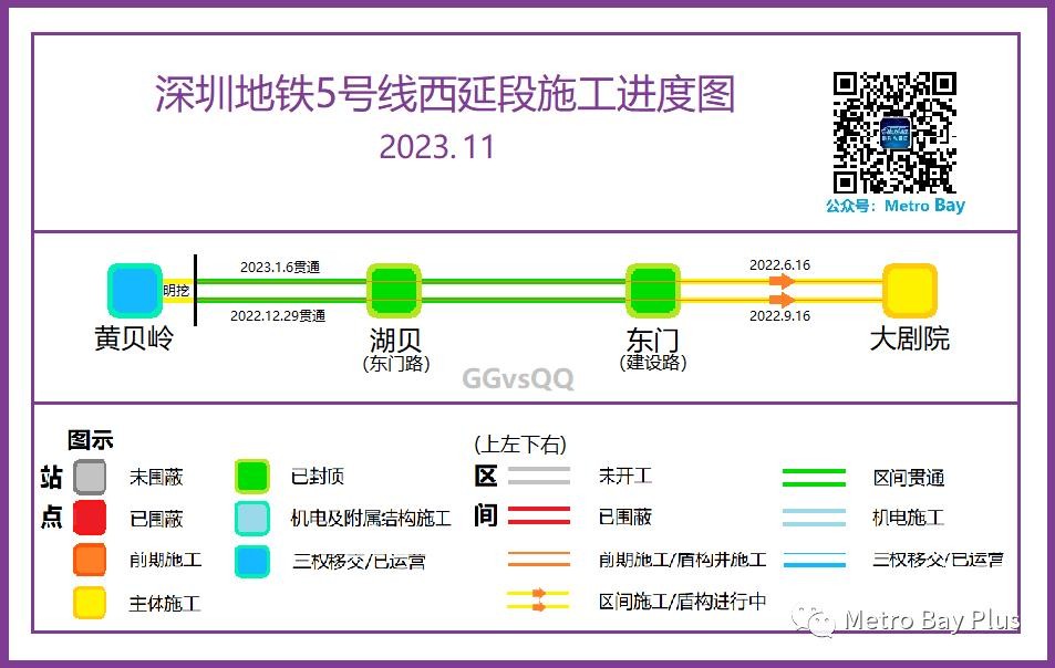 从2019年11月起,Metro Bay团队开始关注大湾区地铁在建新线的建设动态,并于每月月初制作进度图。