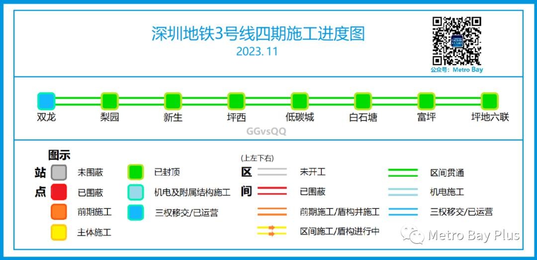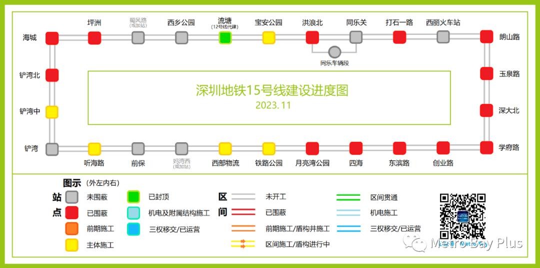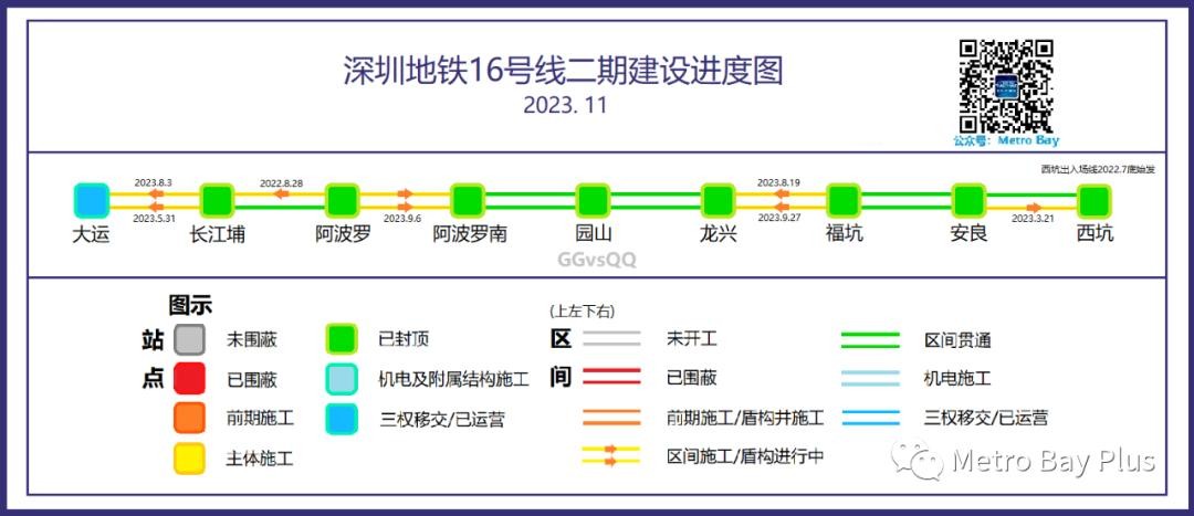 Metro Bay深圳地铁在建线路进度图于每月月初更新,将为您直观呈现深圳9条在建地铁线路在本月取得的进展。感谢您的关注!