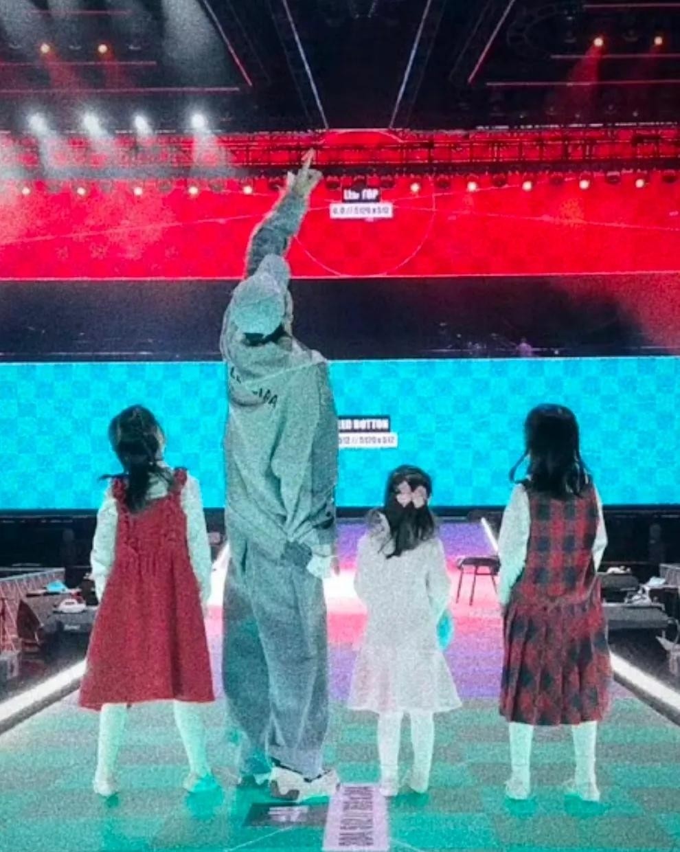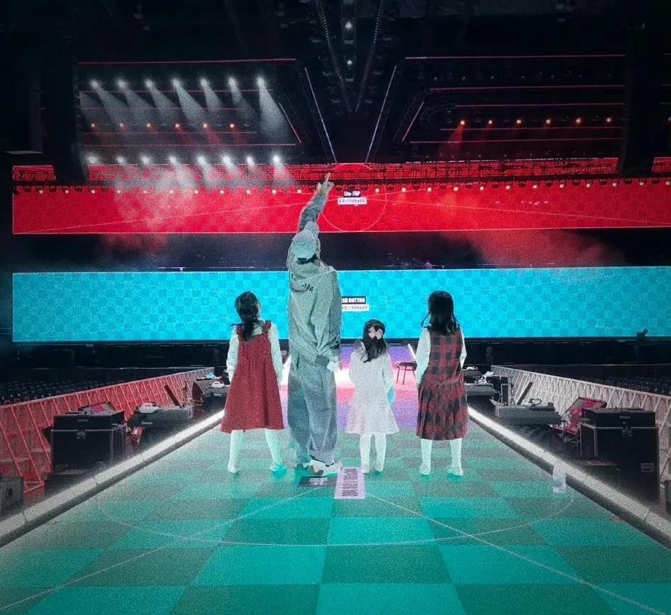 张杰晒和三个女儿合照,父女四人在演唱会舞台同框,画面温馨幸福