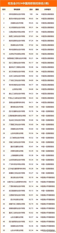 1、2024年全国Ⅰ类高职专科院校排名