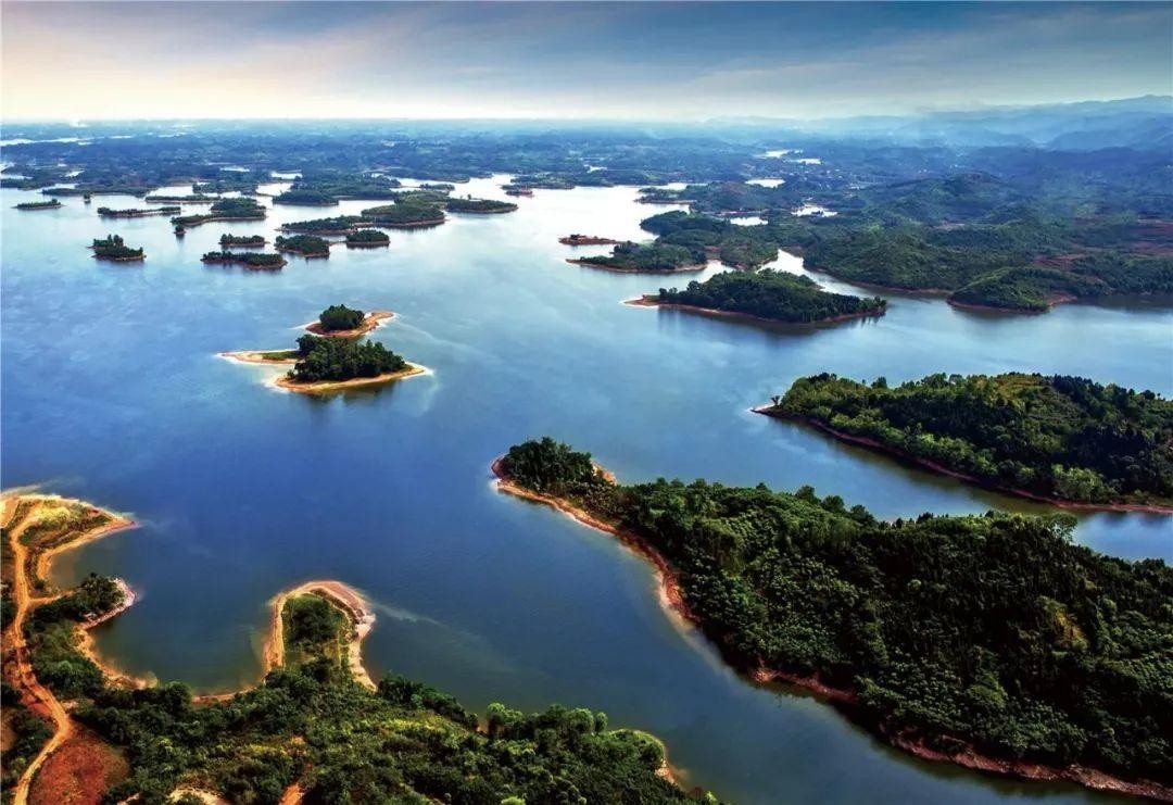 三岔湖是都江堰龙泉山灌区水利工程的大型屯蓄水湖泊,也是四川省第二大湖泊。面积121平方公里,水域面积27平方公里,蓄水2.27亿立方米,镶嵌着113个孤岛和160多个半岛,有240公里迂回曲折的湖岸线,湖面海拔457米至462.5米,湿地面积达3平方公里,各种岛类繁多。山、水、岛交相辉映,被誉为“西部百岛湖,天府新乐园”,有“天府明珠”的美称。以岛为主的景点有凌雨烟阁、水上迷宫、水天一色、花岛、月亮岛、鸟岛、斩龙岛、女祸石等10余处。湖周山区有幽美险峻的丹景山、张飞营、乾封庙、三峨眉、牛角寨、石洞沟和古老的摩岩石刻等景观。其中凌烟雨阁为三岔水库主坝,十分雄伟壮观,坝高35.5米,坝长1000米,可拦蓄两亿多方湖水;水上迷宫在湖西月亮岛一带,岛屿星罗棋布,港汊曲折迂回,形成山外有湖,湖内有山的格调;水天一色因南湖船码头水域辽阔,一望无垠,烟波浩淼。