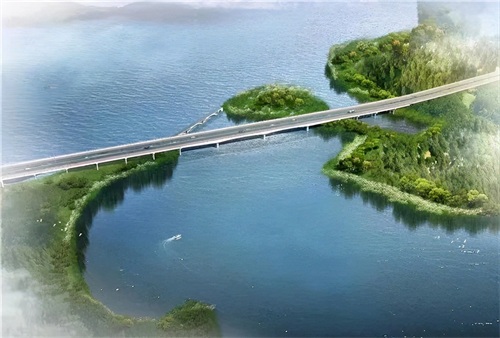 三岔湖大桥位于成都东部新区董家埂镇境内、三岔湖最南端,全长546米,一端接环湖路东段,一端接环湖路仁寿段,是三岔湖环湖路中至关重要的一段,大桥计划年底前基本建成。