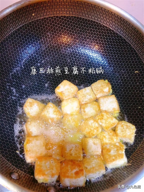 4、豆腐开始滋滋滋滋滋了,两面煎至金黄。
