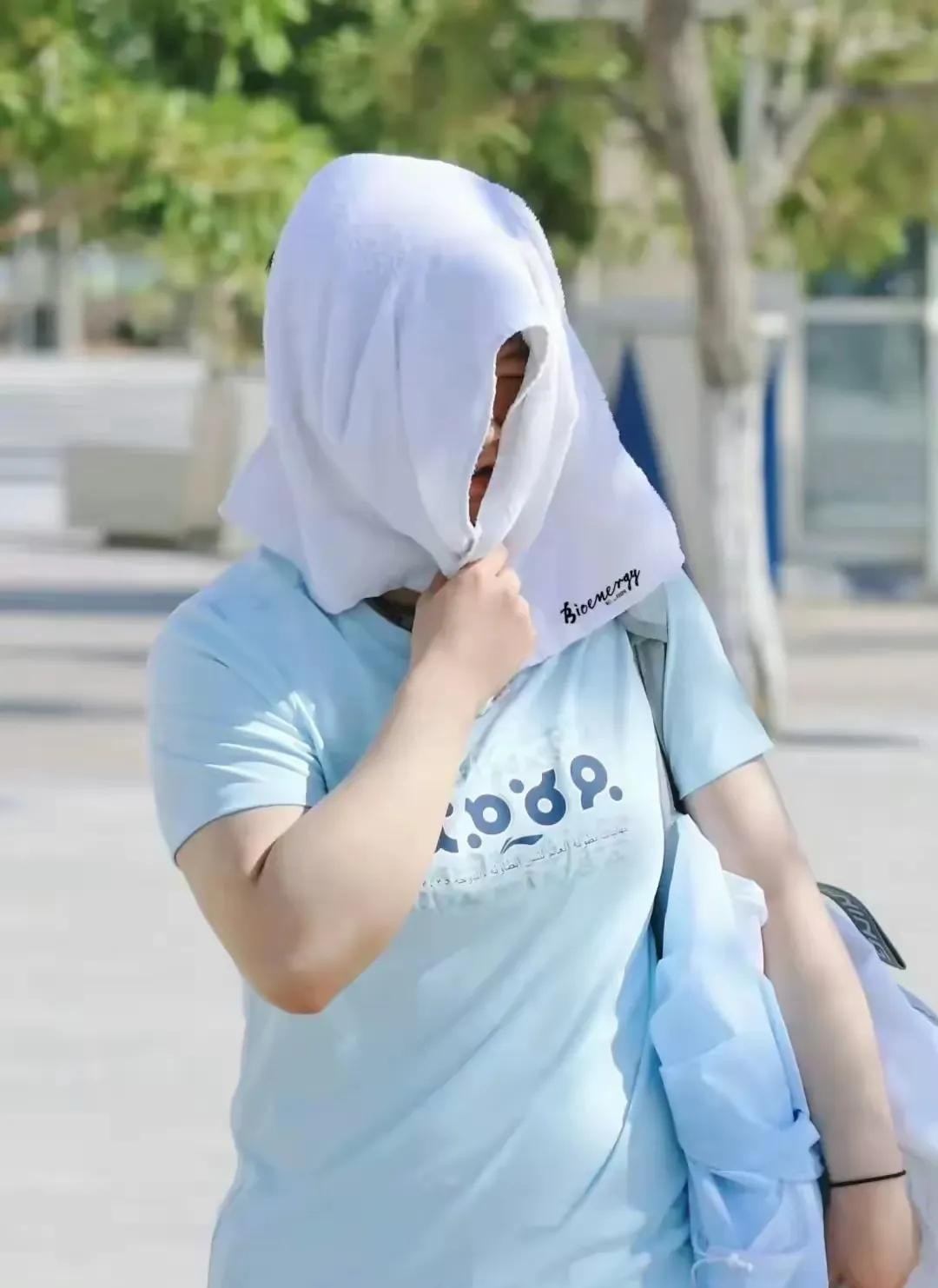 孙颖莎在多哈高温下训练,以毛巾遮阳防护