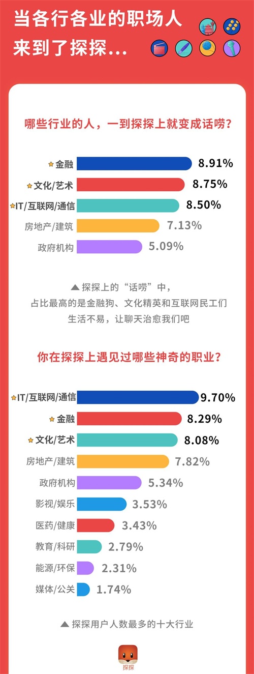 这里有来自各个行业的用户,对他们而言,探探是繁忙工作之余要经常逛逛的“放松区”。