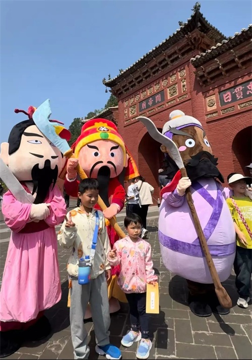 “快看!‘关公’变成动漫人物啦,好酷啊!”5月3日,运城解州关帝祖庙内欢声笑语不断,一场别开生面的文化演艺活动正在火热进行。身着动漫服饰的“刘备”“关羽”“张飞”一经亮相,便引来游客阵阵欢呼,不少小朋友兴奋地跑上前合影,大人则纷纷举起手机拍照,现场气氛热烈。