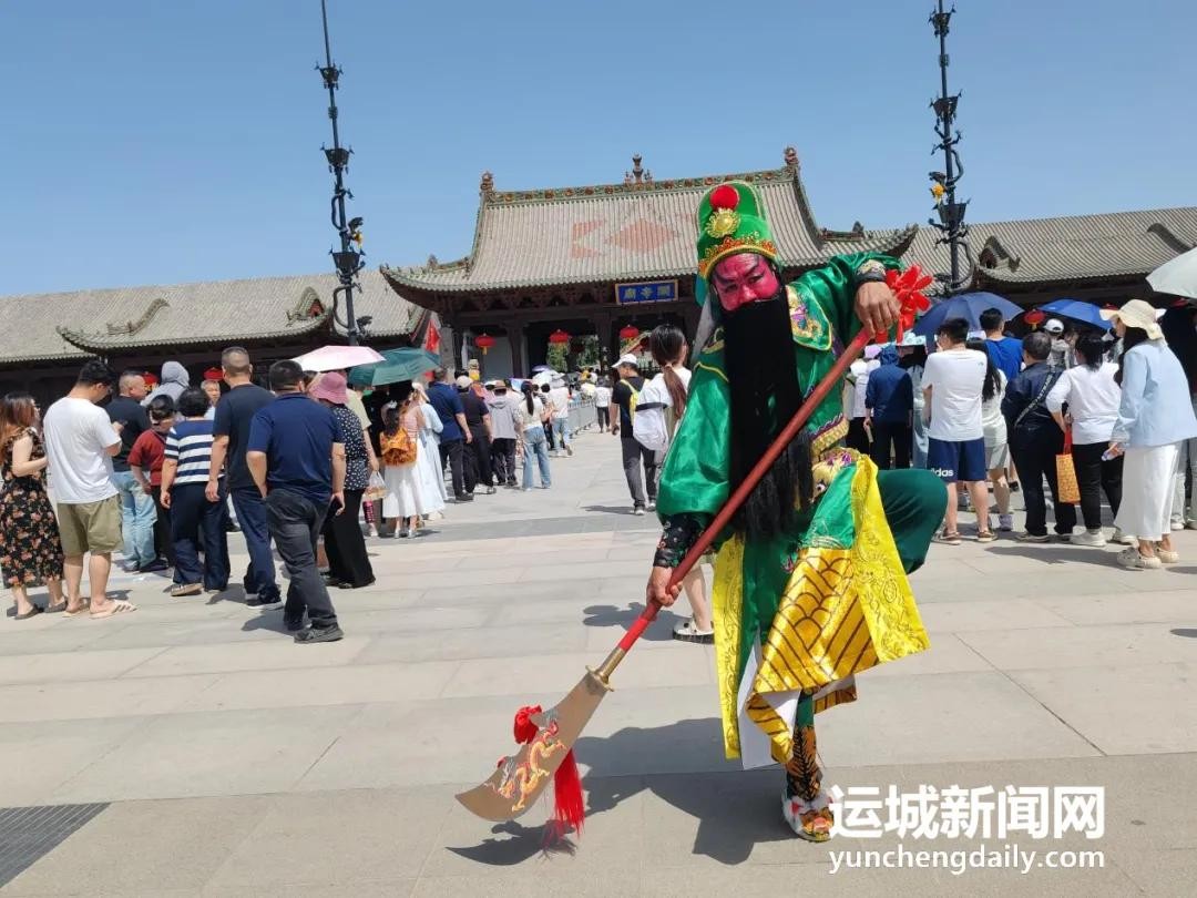 “五一”假期,运城关公故里文化旅游景区的演艺活动有“武圣关刀”表演、戏剧表演、“桃园结义”情景剧、“刘关张”巡游等,分上午场、下午场多场次表演,为游客带来特别的沉浸式体验,吸引诸多游客驻足。
