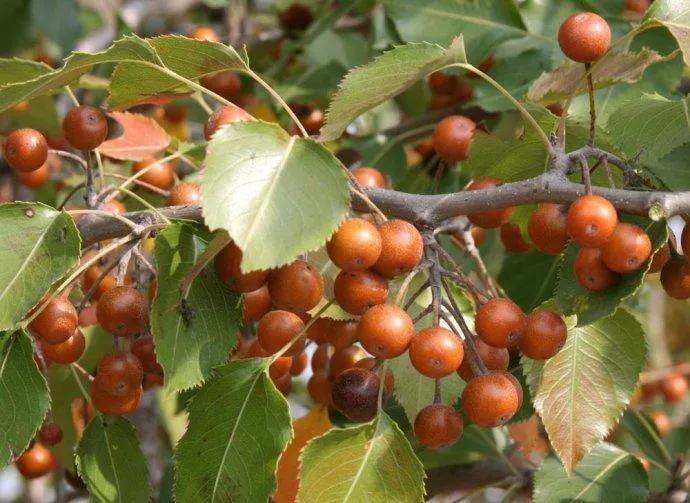 果实圆润如小指肚,初为绿色,渐成褐色,又酸又涩,经霜变成黑红,果肉变得软糯,味道酸甜爽口。