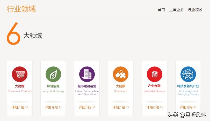 大消费里有我们常见的雪花啤酒、怡宝矿泉水、苏果超市等等。综合能源主要是电力和燃气。城市建设运营里有我们经常逛的万象城,万象汇,还有住宅小区如橡树湾等。大健康主要是医药这块,比如感冒时常喝的999感冒灵,治胃病的三九胃泰,治皮炎的999皮炎平等。产业金融和科兴行业普通大众就接触比较少了。