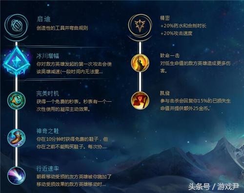 其实根据这个就可以推测出其他出冰锤的英雄也可以使用冰川增幅符文,像纳尔有了冰川增幅之后可以在前期就有很强的压制能力,凯南同样可以这么玩,可以点启迪+精密,选择高攻速水平的消耗打法。