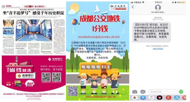 活动内容:使用云闪付APP成都市乘车码(需在乘车码内设置卡号62开头银联信用卡为默认付款卡)乘坐成都主城区地铁或公交(支持线路详见云闪付APP),可享1分钱乘车,单笔最高优惠4元(至少需支付0.01元用于记账),本活动不与其他活动叠加使用。