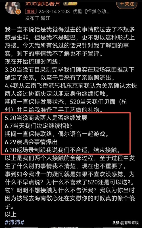 晚上九点,沛沛出面锤滕光正,并晒时间线。