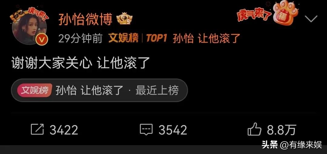 今日的热搜,是属于孙怡的,一句“让他滚了”直接就引爆了热搜。