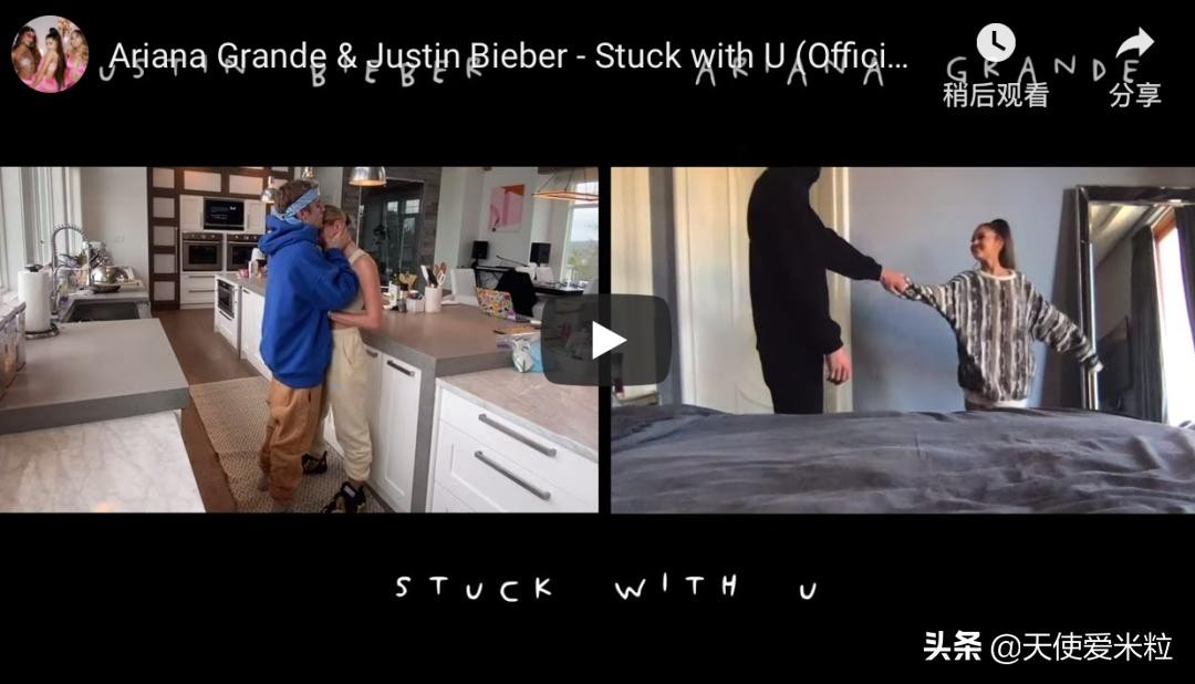 今天的大新闻:比伯联手A妹Ariana Grande推出的抗疫公益新单《Stuck With U》正式大首播,不但全员居家风格,还邀请全球各地歌迷出镜,明星朋友中,肯豆和妹妹Kylie、Ayesha、Stephen Curry 、Gwyneth Paltrow、Chance the Rapper、Lil Dicky、Michael Bublé, 裤衩Ashton Kutcher和 Mila Kunis夫妇以及Jaden Smith也有入镜,超热闹的。