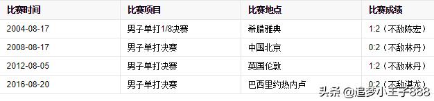 由上图可以看出,林丹晋级奥运决赛之路比较平坦,虽然遇到了号称“林丹杀手”的朴成奂、丹麦名将也是“四大天王”之一的盖德、中国好手陈金,但由比分可以看出这些人都没有对林丹造成什么威胁,全是2:0战胜对手,相较之下李宗伟的晋级之路就没有林丹那样一路顺风,尤其是在四分之一决赛力克印尼名将索尼后在半决赛遭遇韩国“磨王”李炫一,虽然李宗伟2:1拿下了对手,但也被李炫一磨得够呛,很多球都是多拍才结束,这对李宗伟接下来准备决赛的体能储备产生了极大考验。而这一幕在2016年的里约奥运会羽毛球男单比赛上又重演,李宗伟在半决赛2:1艰难战胜了一生之敌林丹,体能也消耗巨大,果不其然,在接下来的决赛里0:2脆败中国球员谌龙。