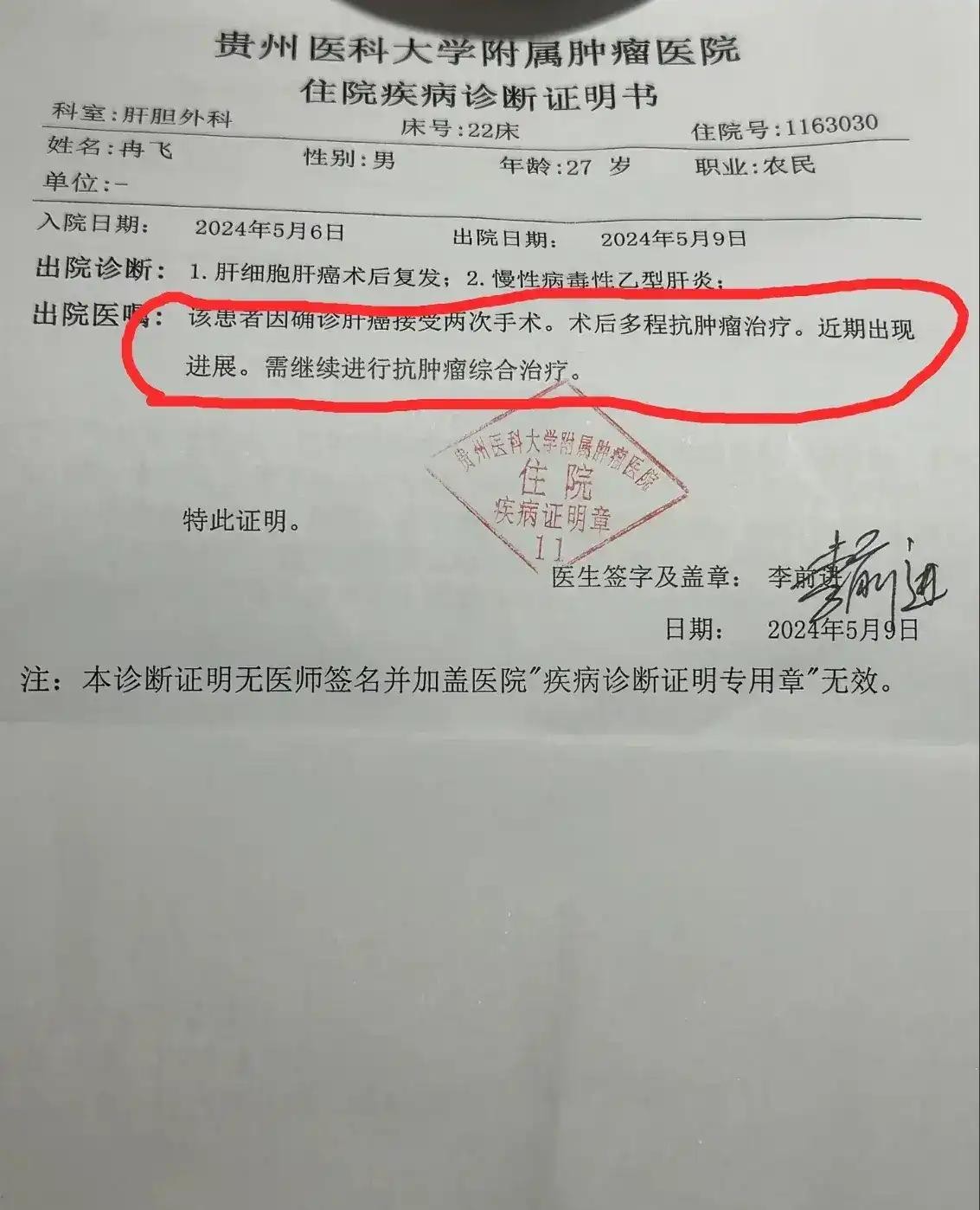 在2个月前,大飞又晒出了最新的诊断证明,显示自己已经完成了2次大型手术,而原本以为病情会有所好转的复诊检查结果也出来了。