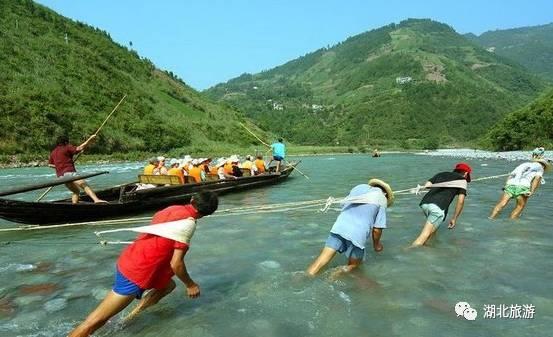 "三尺白布,嗨哟!四两麻呀,嗬嗨!脚蹬石头,嗬嗨!手刨沙呀,嗨着!光着身子,嗨哟!往上爬哟,嗨着着……"在神农溪雄奇险秀的峡谷里,声声高亢激昂的纤夫号子回荡在山崖间。"素有"山川险胜甲荆南"的巴东是古代巴人故里,也是纤夫文化发源地。
