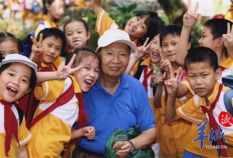 2006年,卢永根参加广东省院士活动时,在湛江湖光岩与小朋友合影
