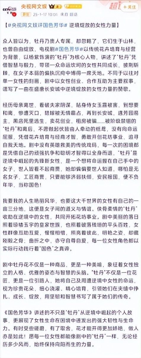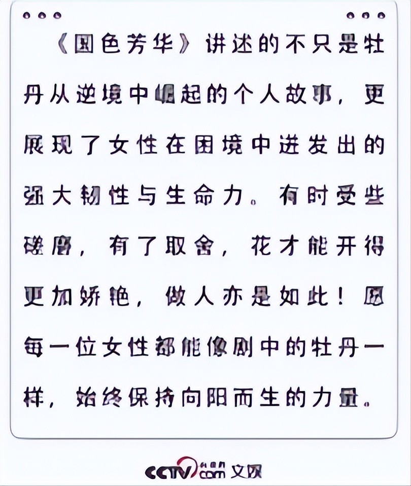 在多方人马的夸赞下,央视官媒也坐不住了,也发表了一篇文章,来点评《国色芳华》这部剧。