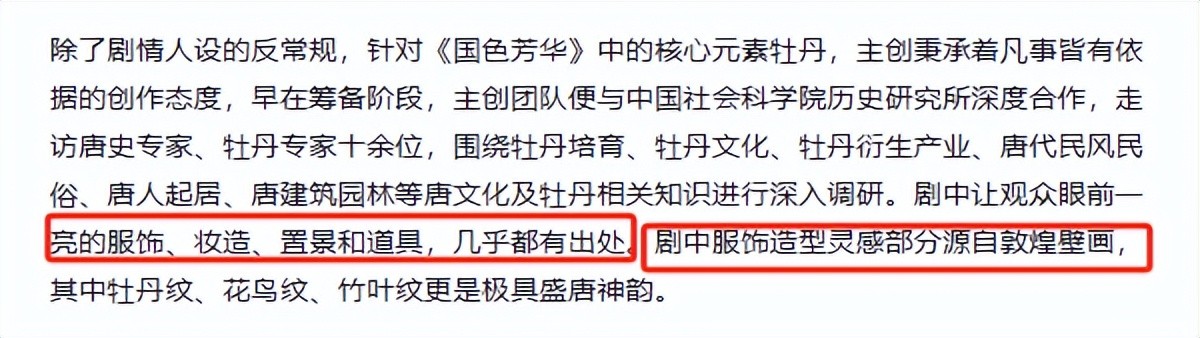 据悉,为了《国色芳华》的口碑,工作人员对剧中的服饰、妆造、道具等,可以说是做了大量的前期调研。