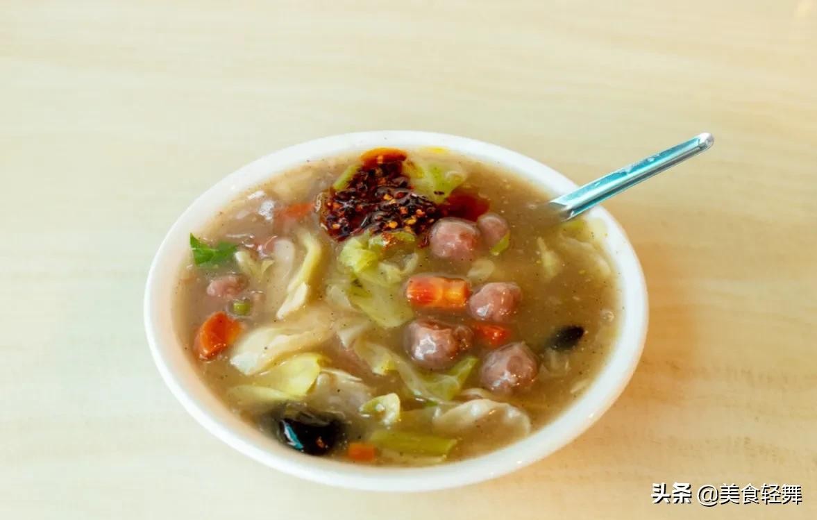 来西安,早上一定不要错过一碗热气腾腾、椒麻咸香的糊辣汤,这是西安人的最爱,而且很火爆。它是用牛羊骨熬汤,加入了现做的牛肉丸,浑圆Q弹,里面还有土豆、圆白菜、胡萝卜、牛肉粒、豆角等,用大量的胡椒粉调味,然后勾芡而且。