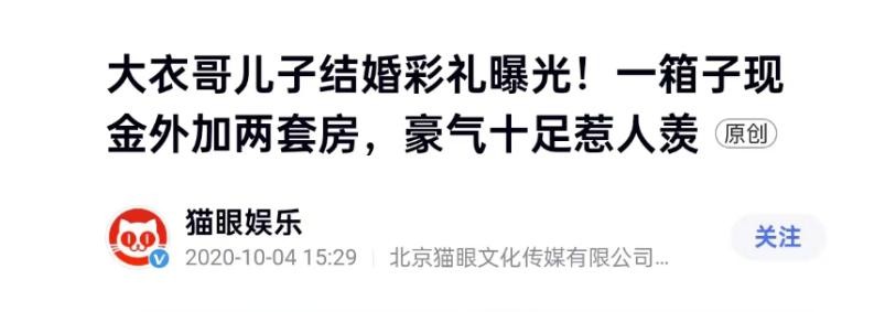 《大衣哥儿子结婚彩礼曝光!一箱子现金外加两套房,豪气十足惹人羡》——猫眼娱乐