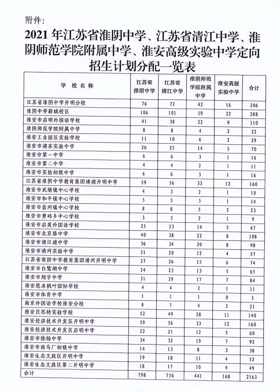 新校区:第一步,在城区(含经济技术开发区、清江浦区、淮安区、淮阴区、洪泽区、工业园区、生态文旅区)范围内,按第一志愿择优录取统招计划的30%,共81名。(270×30%=81);第二步,在清中新校区统招计划30%录取线下降20分,按第一志愿择优录取定向分配计划189名;第三步,对未完成的定向分配计划,在城区前三个志愿填报清中新校区的考生中择优录取,录满为止。