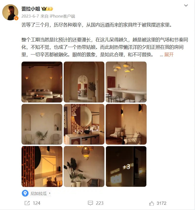 这位常驻海外的女子,在她的社交圈分享的,或是自家那碧波荡漾的私人泳池,或是绿意盎然、布置雅致的别墅后花园,无一不彰显出生活的优越与惬意。