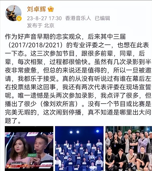 然而,令人疑惑的是,好声音节目组在节目停播后,却选择通过一系列行动试图洗白。从评委到学员,陆续发文为节目说话,为自己的公正辩护。这些发声的时间和内容似乎都被有意安排。有网友指出,这是节目组试图在停播后翻盘,但却在公众眼中变得更加虚伪。
