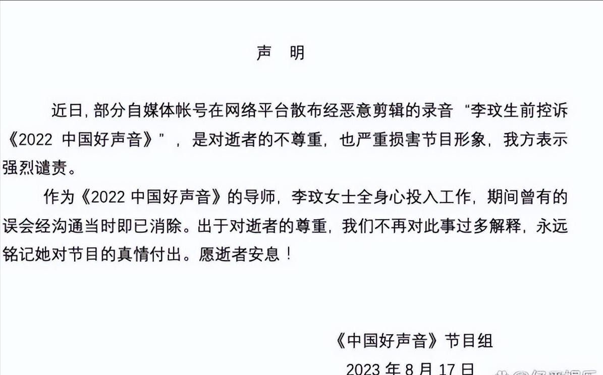 "造因于己,祸由自招。"这个俗语或许最贴切不过地形容了《中国好声音》节目组的自我毁灭过程。早在去年,李玟控诉赛制不公,节目组以合同逼迫其发文平息争议,埋下了祸根。接着,私自将李玟的录音剪辑为自媒体恶意剪辑,对外宣称避重就轻,态度傲慢。浙江广电也未能及时处理网友的诉求,与好声音节目组一起遭到指责。