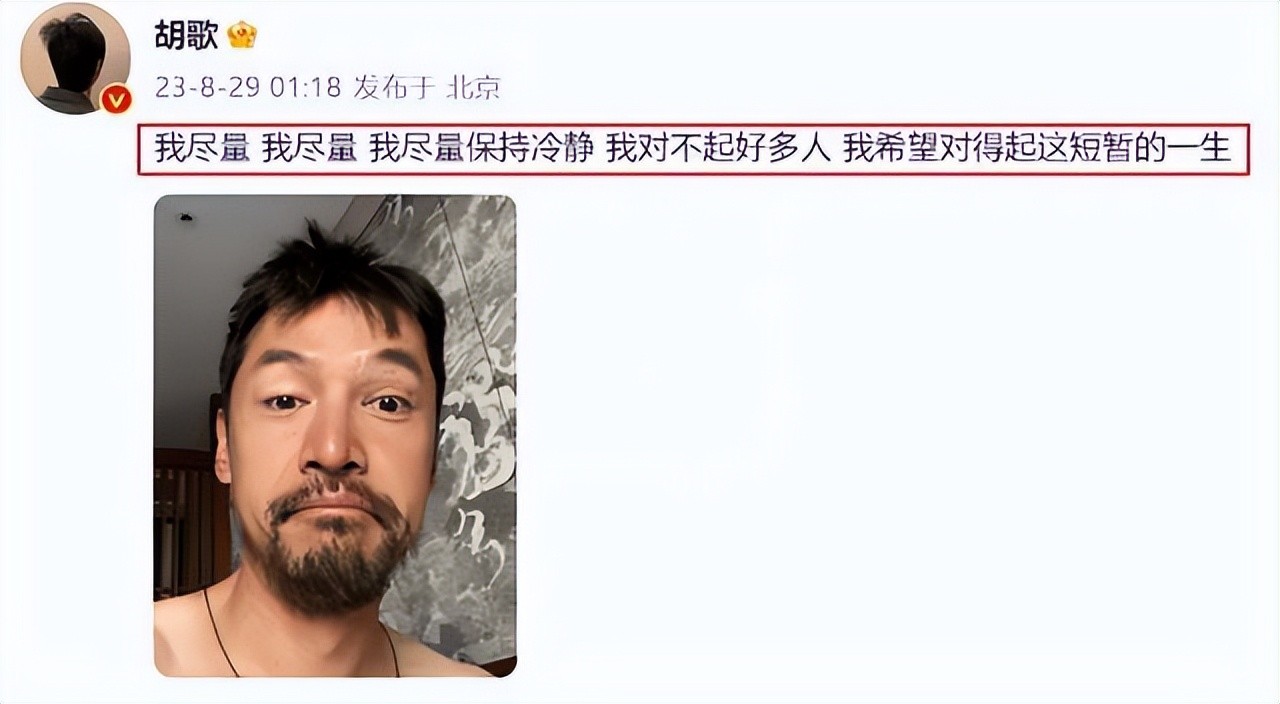 凌晨的微弱光线下,手机屏幕上一则动态吸引了大家的目光。那是胡歌,一位我们熟知的演员,他的更新却与往常截然不同。"我尽量、我尽量、我尽量保持冷静,我对不起好多人,我希望对得起这短暂的一生。”这段简短的文字,仿佛散发着深邃的情感。一张素颜自拍照伴随而来,面容疲惫不堪,那些明显的疤痕,一度隐藏在岁月背后,现在清晰可见。