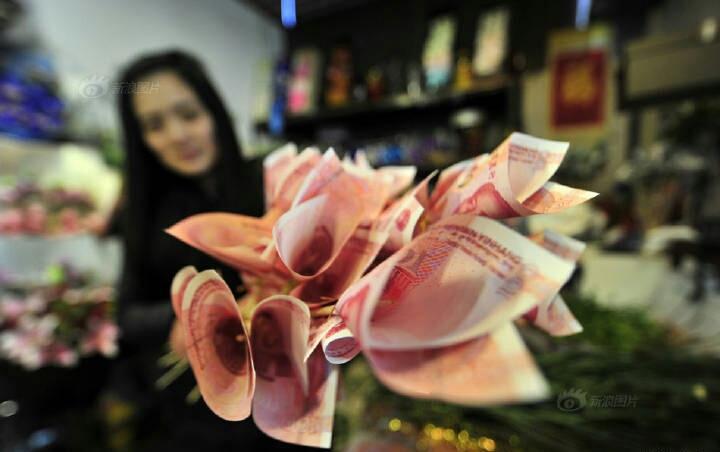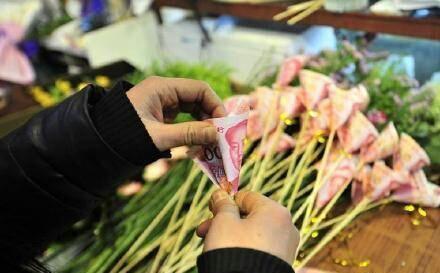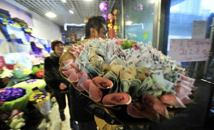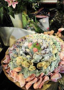 济南一“土豪”花800元委托花店轧制了一束人民币“钱花”,