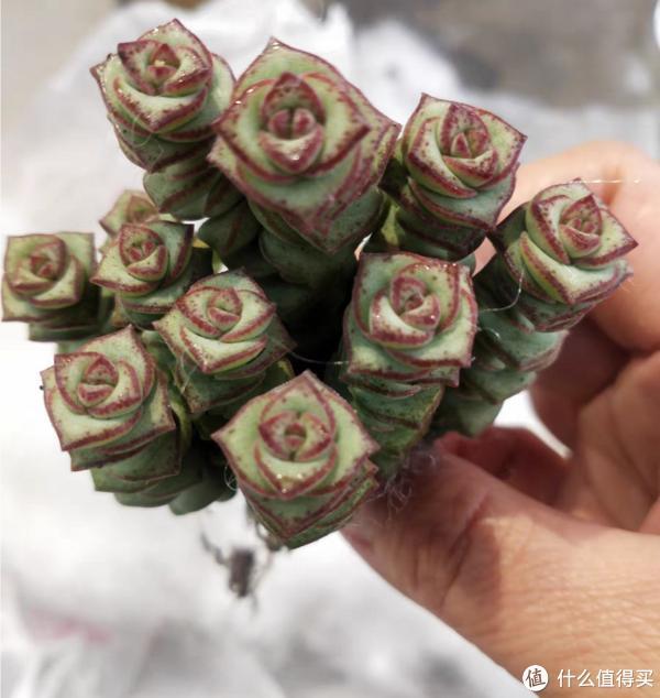 这个钱串子非常的漂亮,花瓣的四周都是红红的颜色,红色和绿色搭配在一起,非常的好看。听卖家说,这种多肉植物非常喜欢大太阳,养多肉的时候,一定要把它放在阳光充足的地方,这样,才能够越养越好看。