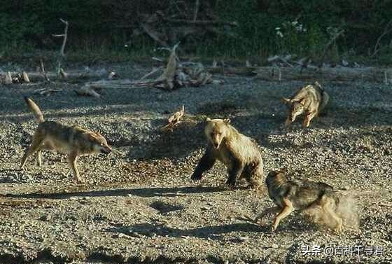 上世纪70年代阿拉斯加,一头棕熊抢夺了狼捕杀的驼鹿,并杀死了一只狼。