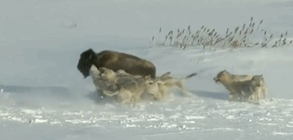 灰狼强大的战斗力来自于群体作战,而非单打独斗,成群的狼不惧怕北美大陆上的任何动物,但落单的独狼面对美洲狮、美洲黑熊和棕熊时会处于下风。