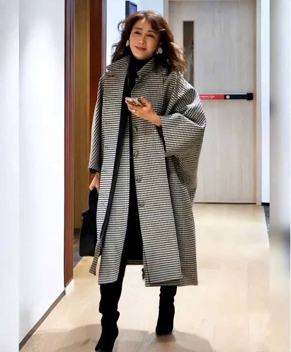 黎姿选择了一身千格鸟图案的大衣,搭配一身黑色内搭,脚踩黑色长靴。这种复古与时尚相融合的搭配,展现了她对于穿搭风格的独到见解。千格鸟的设计既展现了她对于流行元素的敏感,又突显了她对于个性化穿搭的独特理解。